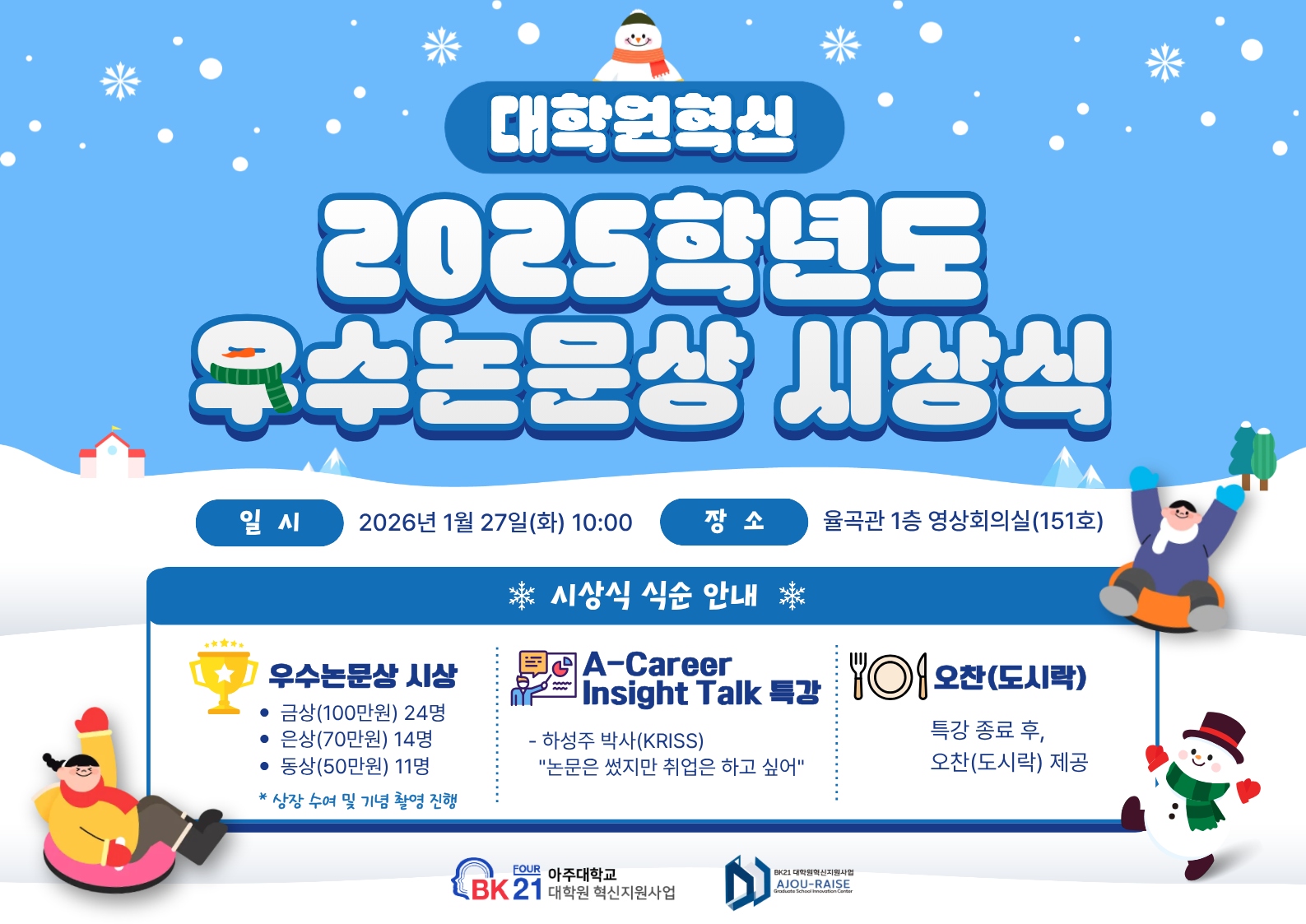 대학원혁신지원사업에서 2025학년도 우수논문 및 우수연구노트상 시상식을 아래와 같이 개최하오니 많은 관심과 참여 부탁드립니다.