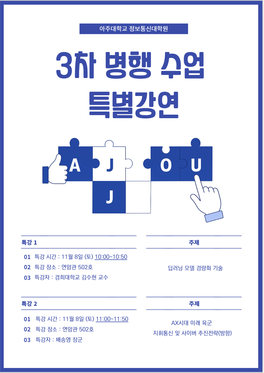 [공지] 병행 3차 특강 및 학생 네트워킹 행사 안내 (11월 8일)