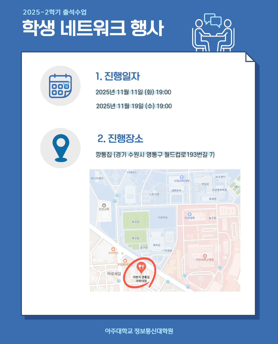 출석 수업 학생 네트워킹 행사 안내 (11월 11, 19일)