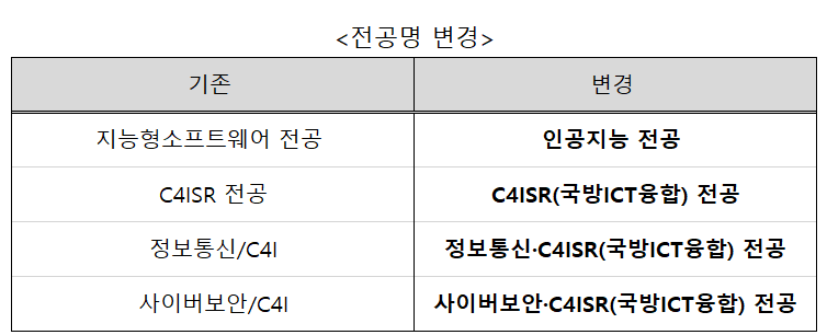 전공명 변경 및 전공신설 안내: 26-1학기부터 일부 전공의 명칭 변경 및 전공 신설 사항이 아래와 같이 적용됩니다.