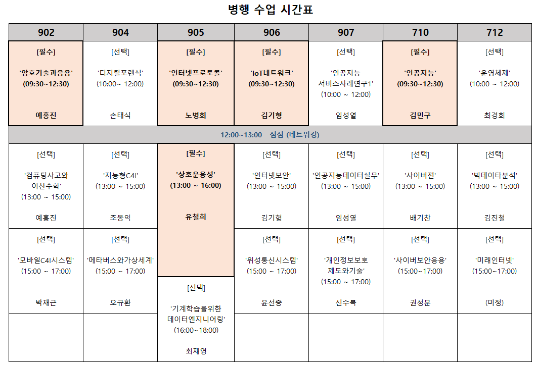 (요일/시간으로 구분 가능->출석: 화 or수 저녁 / 병행: 토 / 원격: 온라인 )